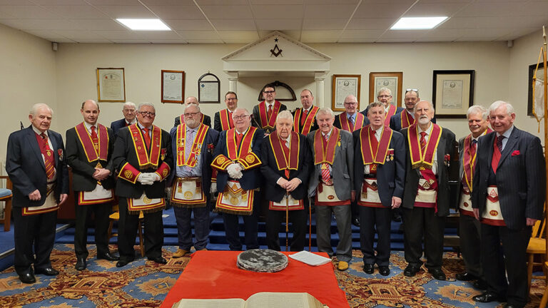 Present on the occasion was an array of esteemed Companions including the Most Excellent and Supreme Grand King of the Grand Chapter of Ireland M Ex Companion Neil Coey and the District Grand King of Down M Ex Companion Roy Humphries.